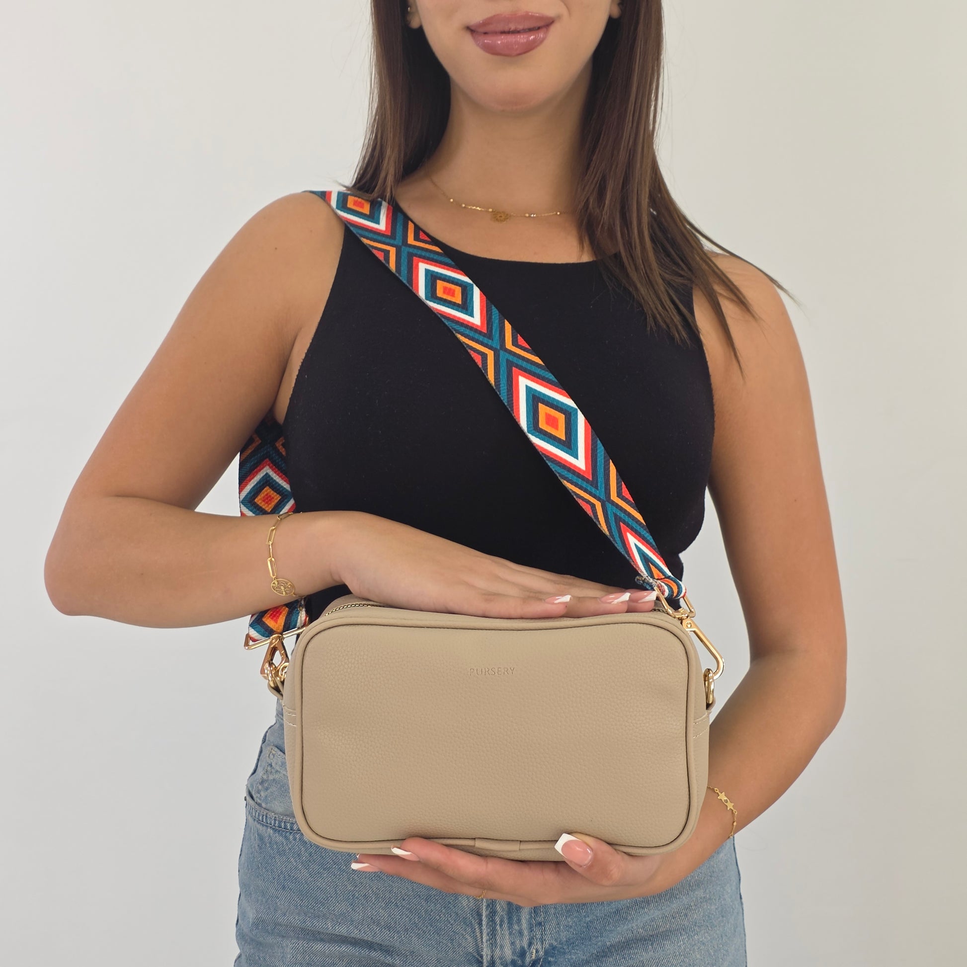 Whether you're dressing up for a special event or keeping it casual for a daytime outing, the Sandstone Cross is the perfect go-to bag. Its neutral yet rich tone ensures that it pairs effortlessly with any wardrobe, making it a true everyday essential.